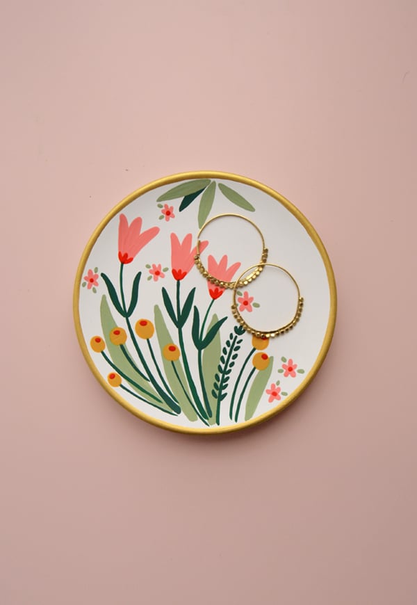 Plato de cerámica pintado a mano con el borde y corazón dorado.