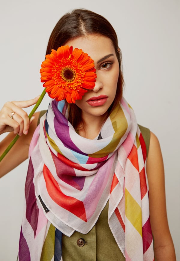 Cuadrado con un estampado exclusivo de ©moniquilla, con unos colores muy favorecedores y atemporal.